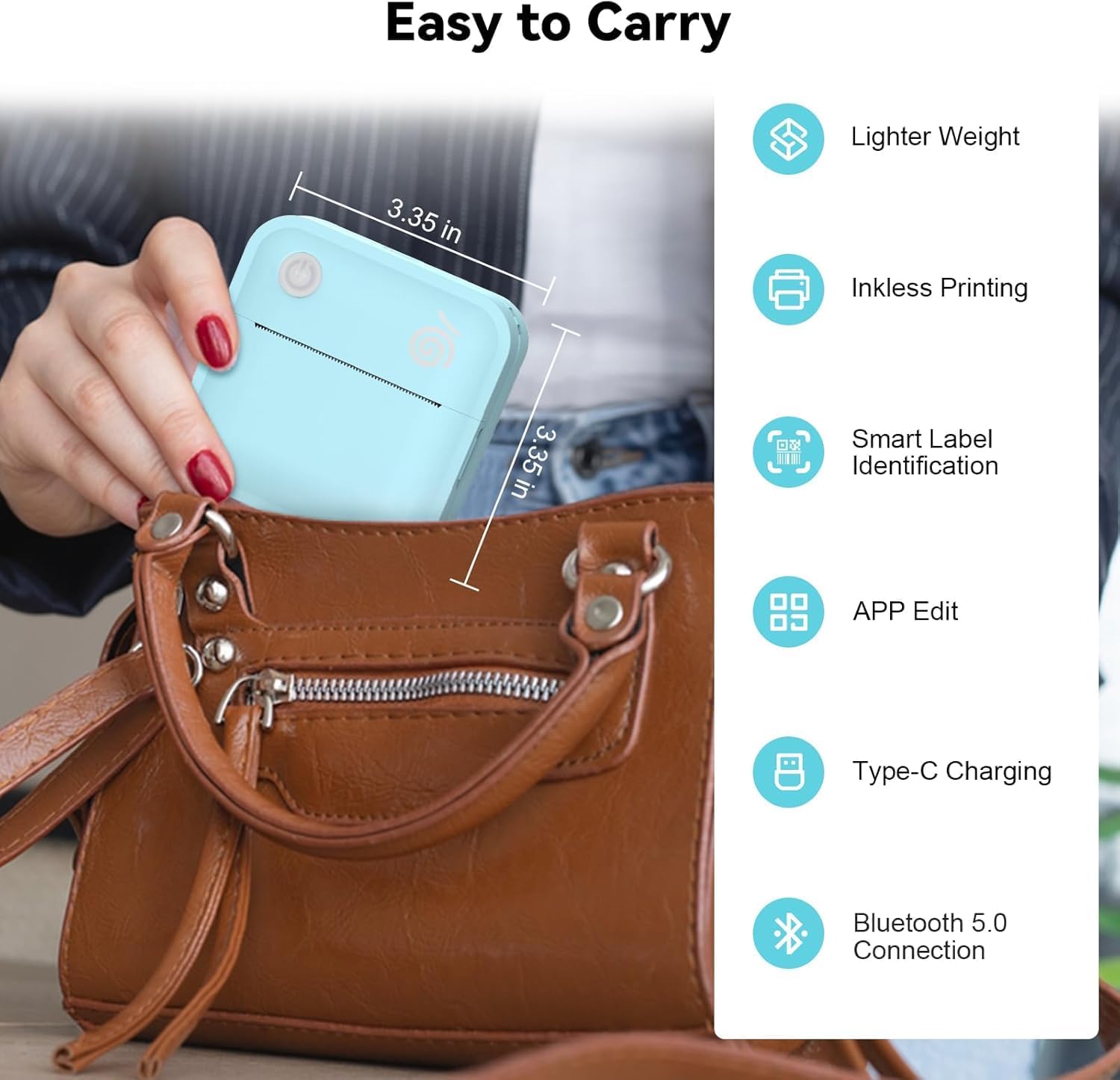 • Pocket-Sized and Ultra-Light: Our sticker printer is only 3.15in x 3.15in (50% of the size of an Smart Phone) and weighs 140g! With wireless Bluetooth 5.0 connection, you can put it in your pocket or backpack and print all kinds of labels and stickers anytime, anywhere.