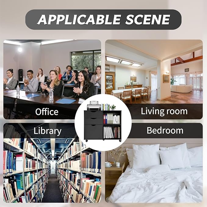 • MULTIFUNCTION: The file cabinet with 3 drawers and open shelves which can be adjustable for 5 heights. The top of the cabinet can bear up to 60kg. Multi-space design is convenient for file classification and better storage of your files