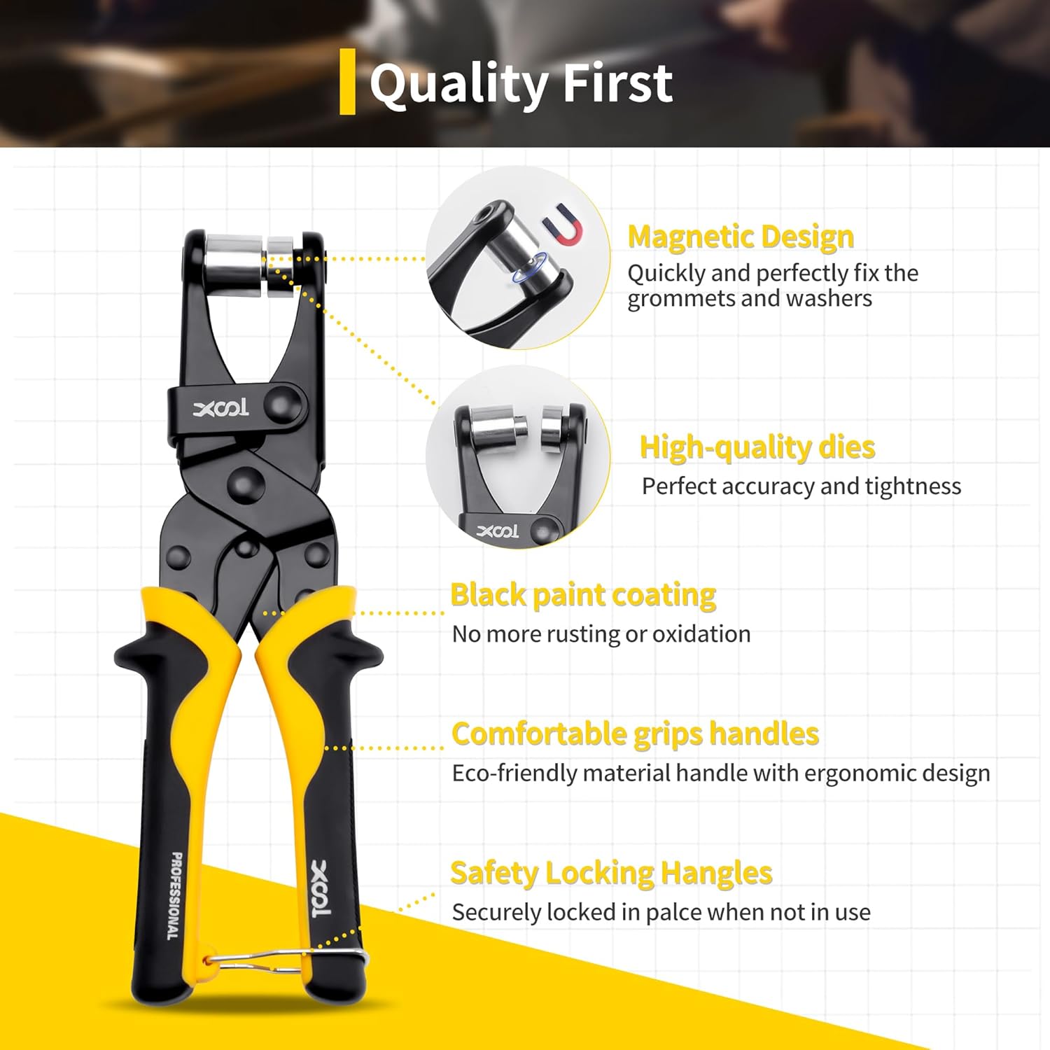 • Durable and Long-Lasting Build – Made from heavy-duty metal with a protective black coating that resists rust and wear, this grommet plier set is built for years of reliable use, even in demanding environments.