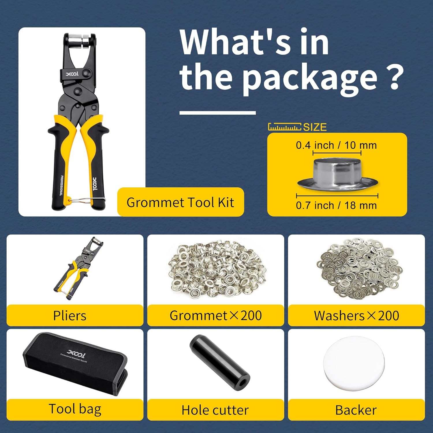 XOOL Grommet Tool Kit, 200PCS 3/8 inch 10mm Grommets, Leathercraft Punching Tool, for Canvas, Fabric, Tarps, and DIY Craft Projects