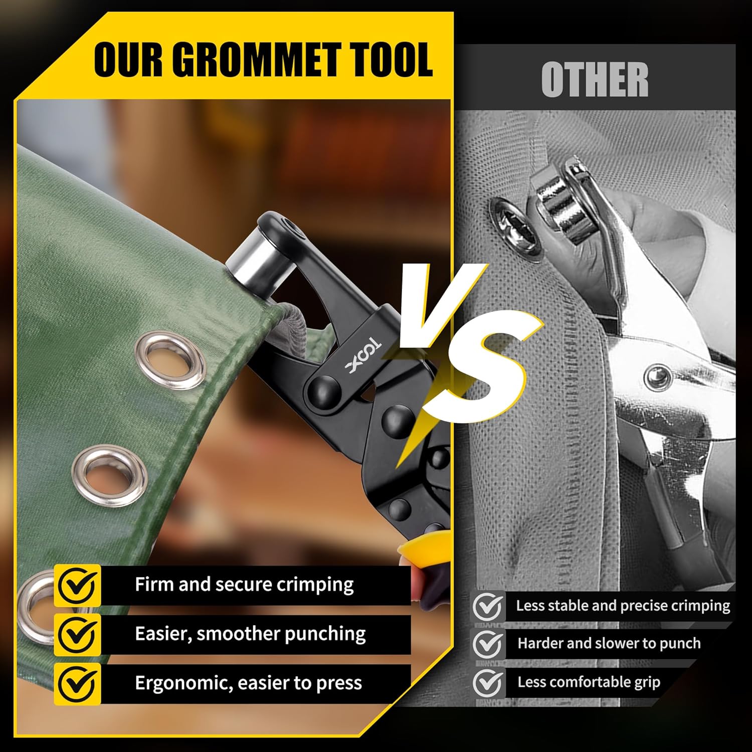 • Easy to Use with Magnetic Positioning – Designed for quick and simple setup, the upgraded magnetic head securely holds each grommet in place for perfect alignment before pressing. This ensures a professional-looking finish and eliminates the frustration of slipping pieces.