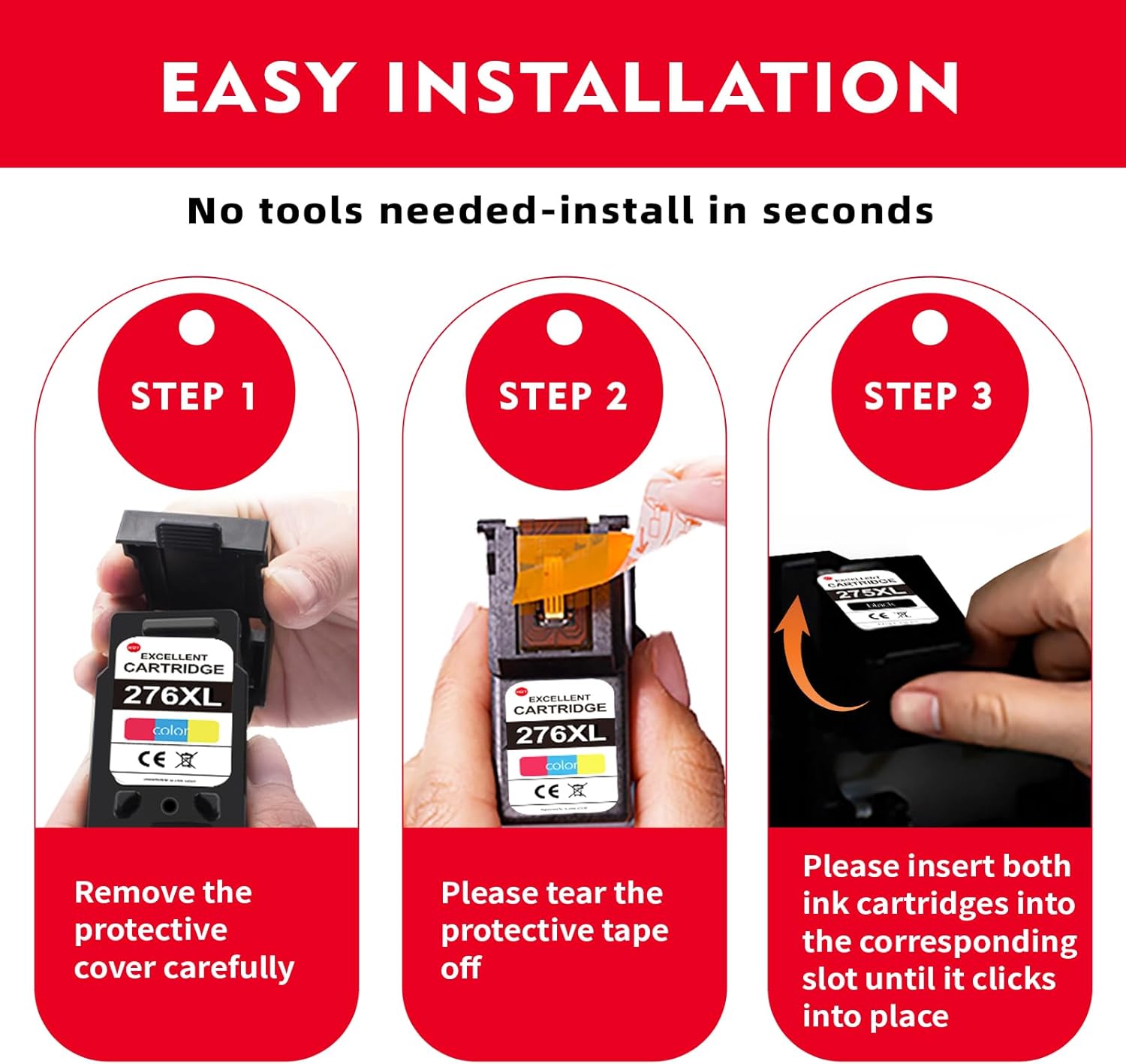• Enhanced Compatibility with Upgraded Chips: Replacement for Canon ink 275 and 276 ,compatible for printers requiring 275XL black and 276XL tri-color ink cartridges, featuring latest upgraded chips to ensure seamless integration with models like TR4720, TS3522, TR4700, TS3722, TS3500, TS3520, TS3720, TR4722, and TR4723. Ideal for home offices and students printing assignments/budgets without driver errors