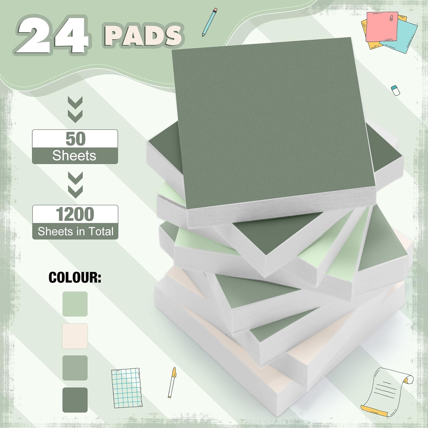 Fainne 24 Pack Sticky Notes Bulk Back to School Supplies Self Stick Note Pads Paper Memo for Office First Day of School Student Teacher Essentials (2 x 2 Inches,Green)