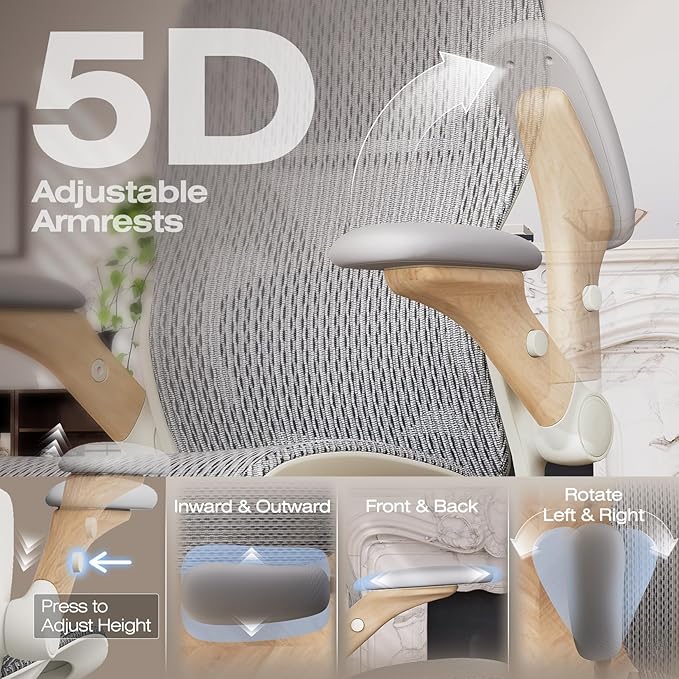 • 【Smart Space-Saving Features】 5D Flip-Up Armrests with skin-friendly panels - 27% denser EVA foam padding achieves Zero-Pressure Contact, it can be adjusted at Height/width/forward/backward/rotate/flip function, a space-saving flip-up design that tucks neatly under standard desks