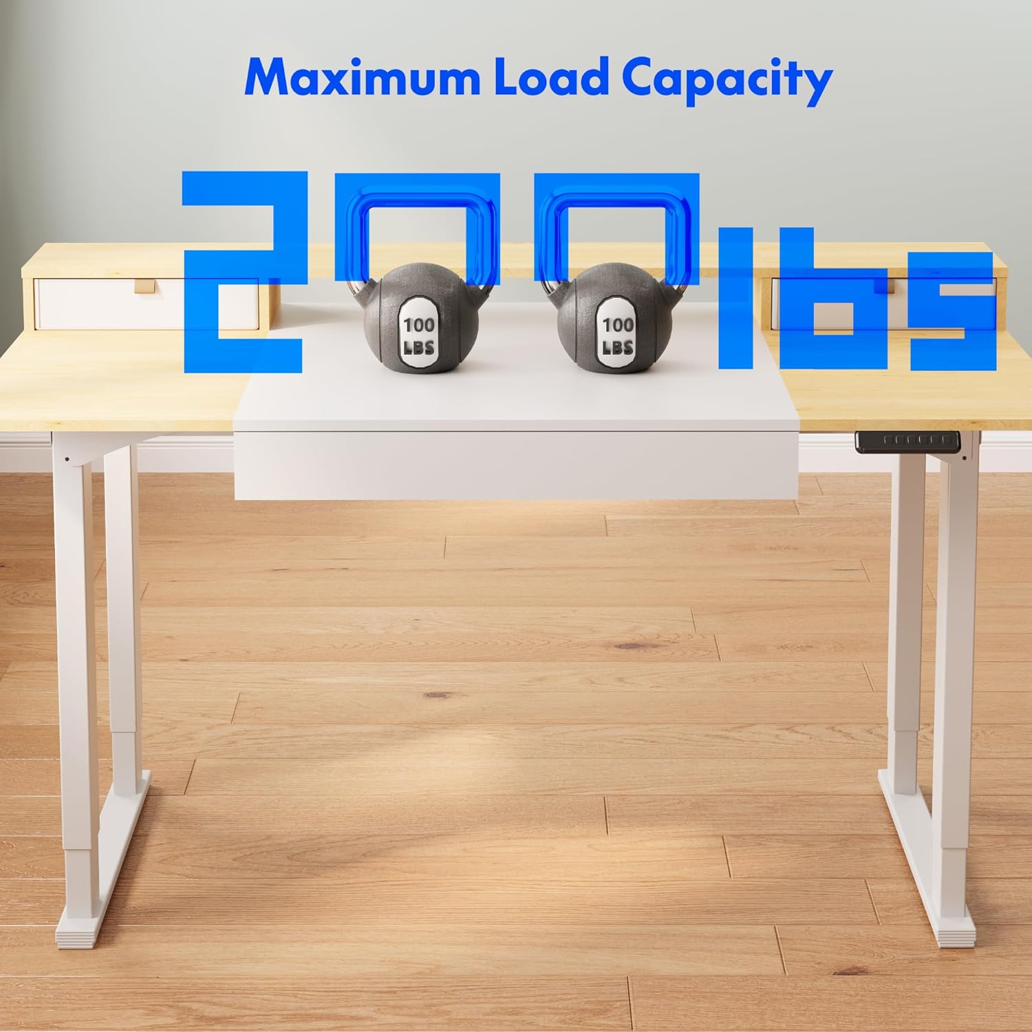 FLEXISPOT 4-Leg Standing Desk with Storage 71x32 in Electric Adjustable Height with 3 Drawers & Shelving Home Office Workstation (White + Maple Top)