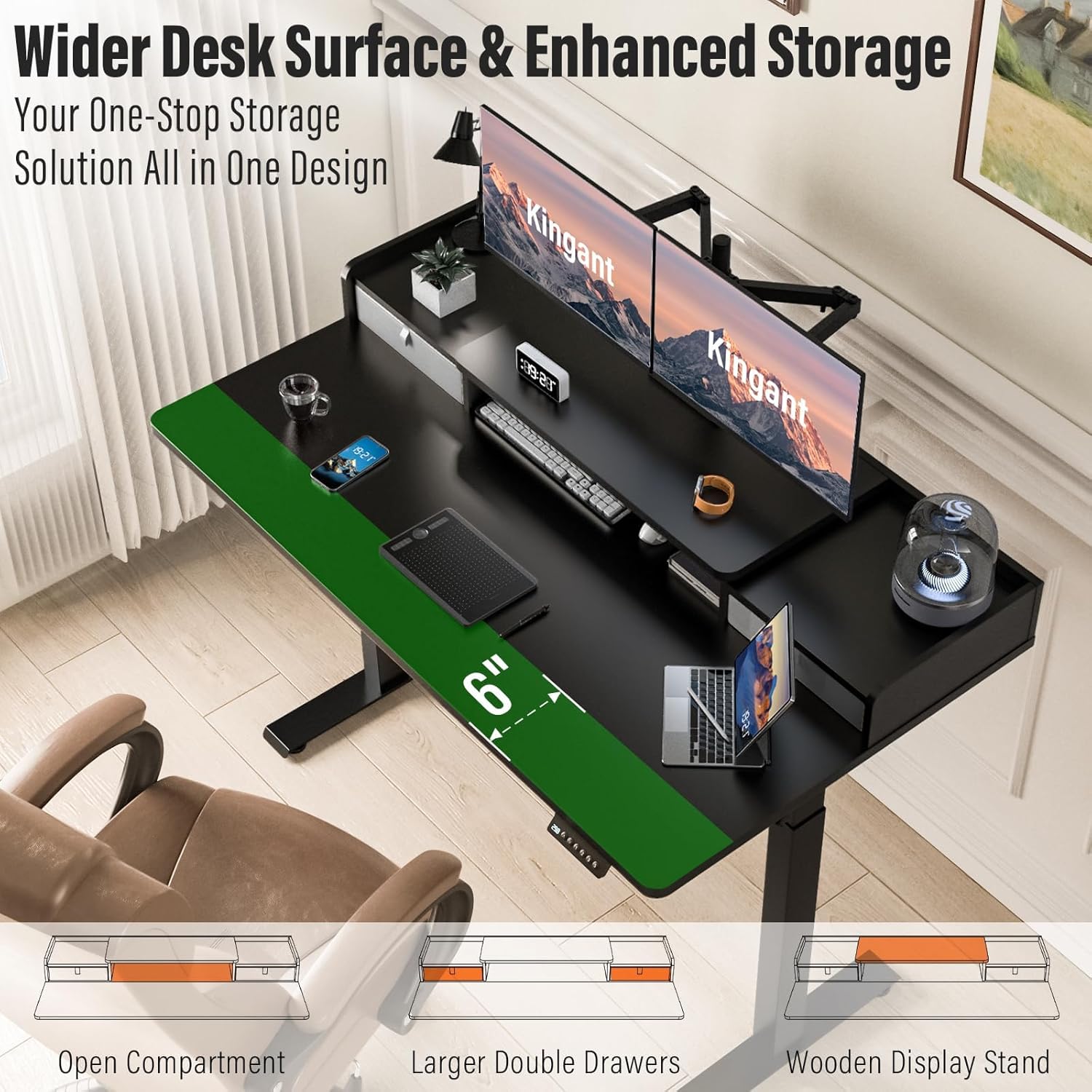 Standing Desk with Drawers,Thickened Table Legs Sit Stand Desk Electric for Home Office & Gaming,Ergonomic Stand Up Desk Cable Management Tray(Classic Black) (Classic Black, 48″ x 30″)