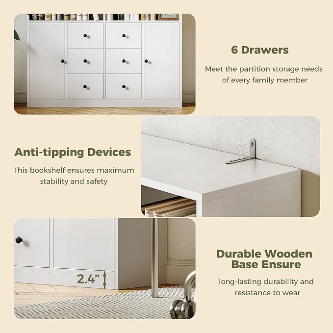 • Six Drawers and Two Doors: Bookcases with drawers and doors with 2 adjustable shelves can help you realise partitioned storage, the perfect combination of home display and storage, making work and life more in tune