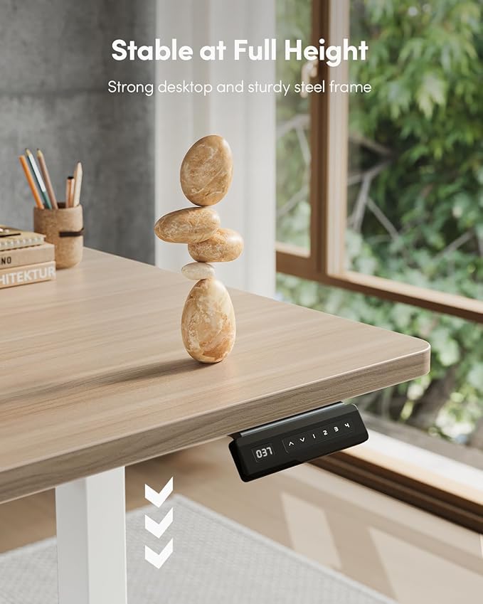 • 4 Memory Height Presets: The Fezibo Electric Standing desk features an intuitive LED controller for quiet operation. It allows you to save up to 4 custom height settings to seamlessly switch between your preferred heights, ensuring you have a focused, distraction-free workspace.