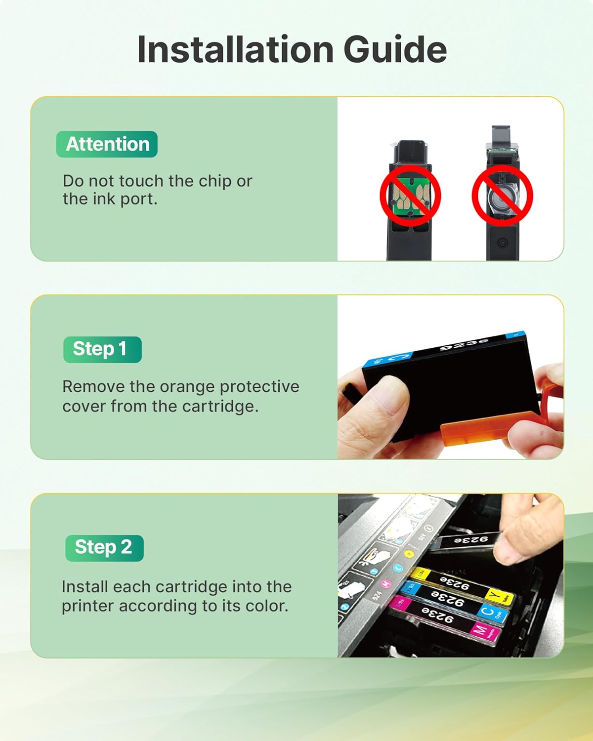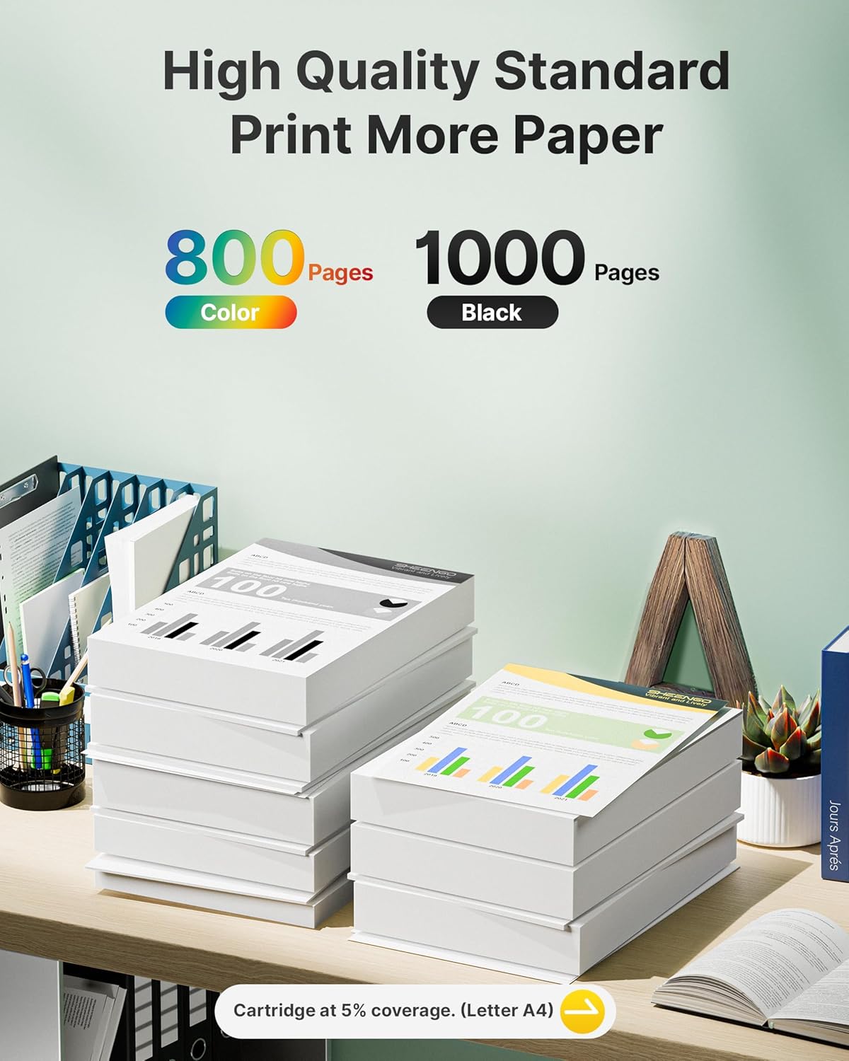 • 𝐇𝐢𝐠𝐡 𝐏𝐚𝐠𝐞 𝐘𝐢𝐞𝐥𝐝: Up to 1000 pages for each 923XL black ink cartridges and 800 pages each 923XL color ink cartridge(5% coverage of A4)