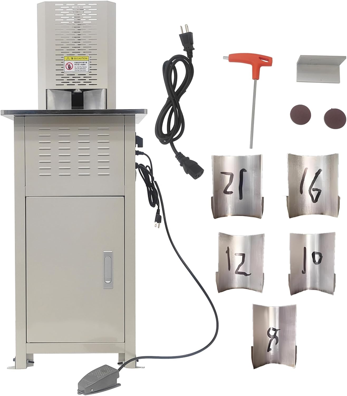 • [INTEGRATED STORAGE & WASTE MANAGEMENT]- The round corner machine features a multifunctional cabinet (43×47.5cm). A dedicated scrap chute channels debris away from the work surface during operation, while the enclosed storage compartment organizes materials and tools. Side scrap outlets collect cuttings automatically. The cabinet provides secure storage for blades or pending projects, optimizing workspace efficiency. Ergonomic side handles facilitate equipment relocation between workstations