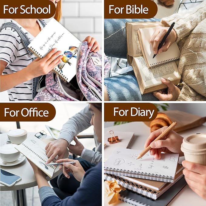 • Spiral Bound Notebook:This journal notebook features a spiral design that allows it to open completely 180°flat for easy writing. It also folds seamlessly 360°without creasing. The pages are easy to tear and don't fall apart easily