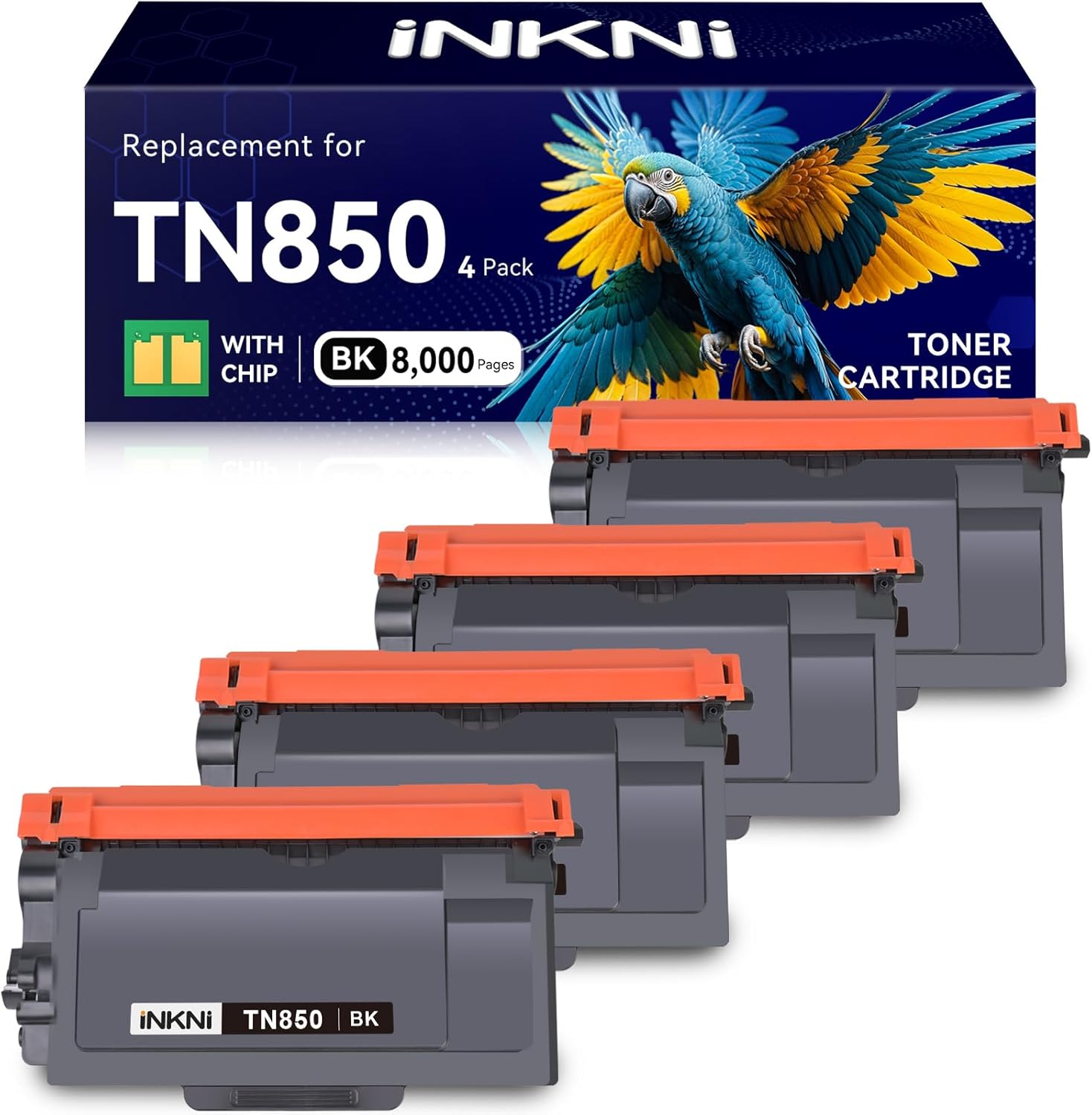 • INKNI TN850 Toner 4 Pack Pakege: TN850 black laser toner cartridges that can professional laser print quality.Each TN850 Toner cartridge up to 8,000 pages. Total print 32, 000 pages.