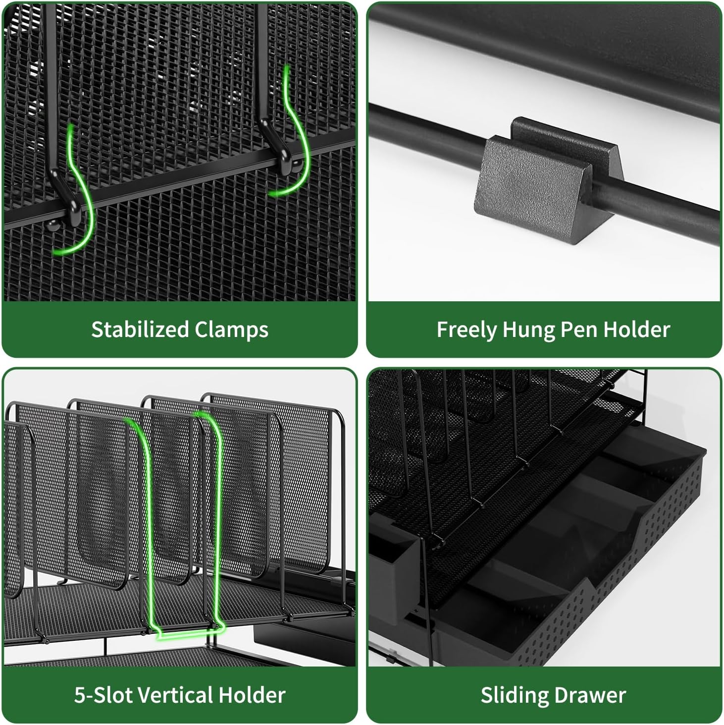 • { Sturdy & Durable } Made of premium metal, the workspace organizer is sturdy and durable for a long-lasting use, providing a stable desk top storage solution. Smooth surface and rounded edges are designed for safe use and will not damage documents