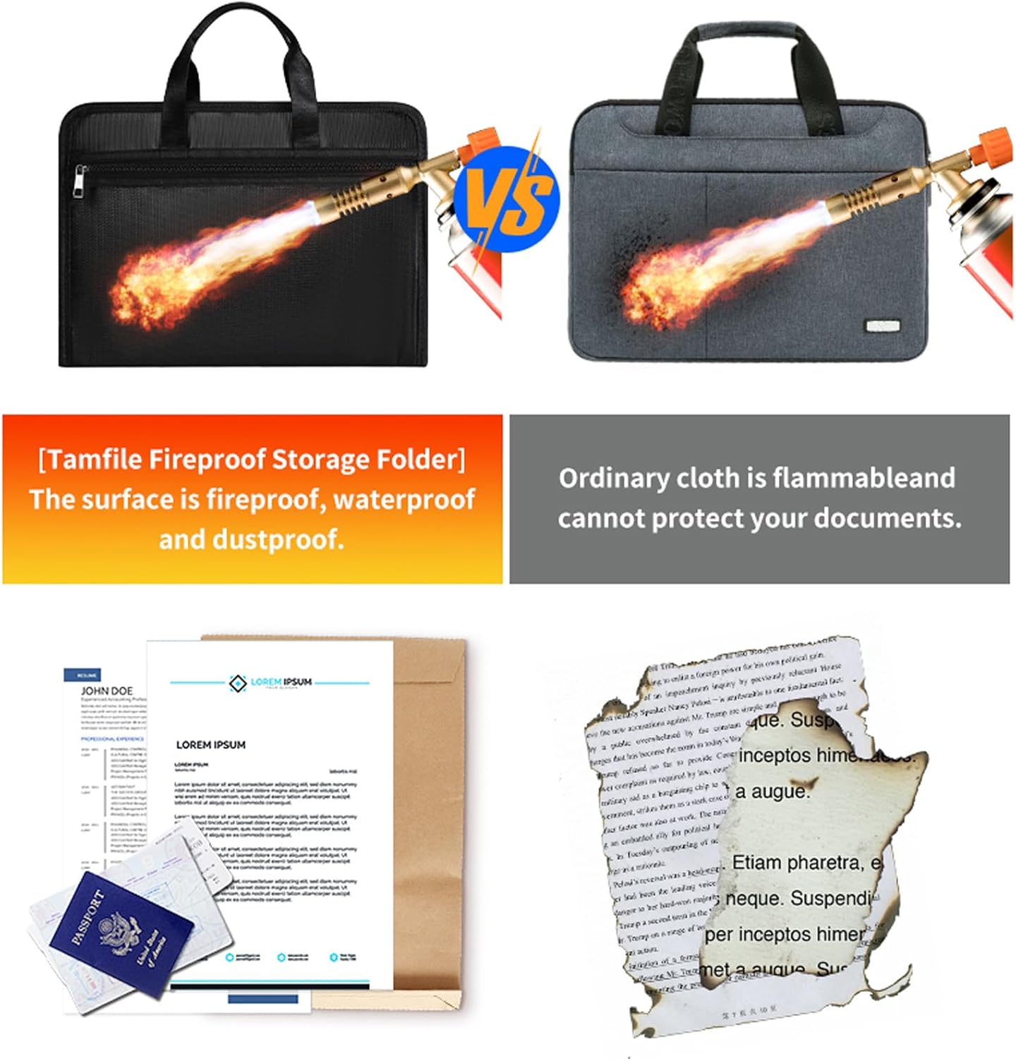 • Secure & Fireproof File Folders – Keep your vital documents safe with our fireproof document bag, designed to withstand extreme temperatures up to 2200°F (1200°C). Perfect for protecting passports, deeds, and certificates—certified by SGS (UL94 VTM-0).