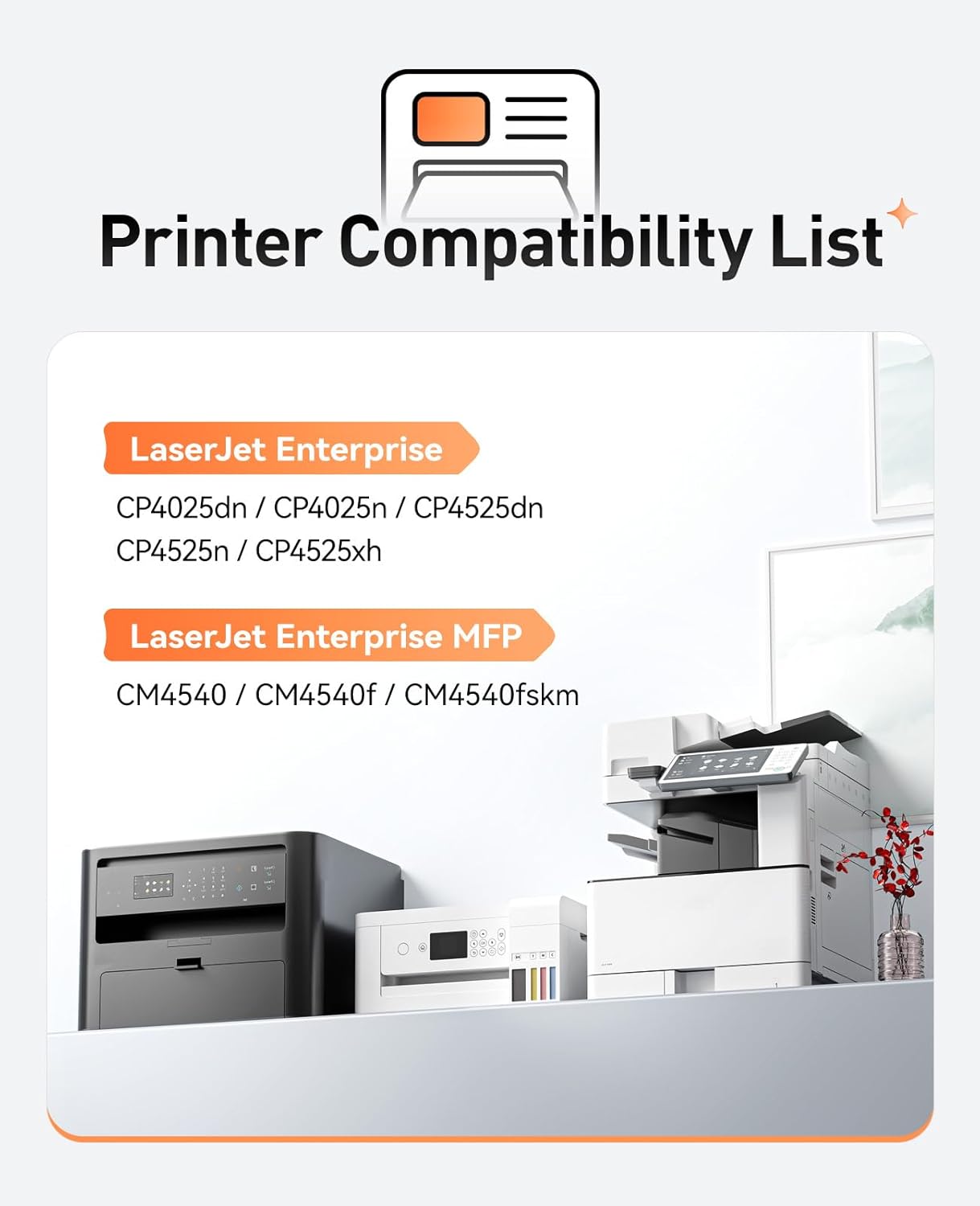 • Compatible Devices : 647A(CE260A)Compatible Printer:Compatible with HP Color LaserJet Enterprise CM4540 MFP, CM4540f MFP, CM4540fskm MFP, Color LaserJet Enterprise CP4025dn, CP4025n, CP4525dn, CP4525n, CP4525xh Series Printer. 648A(CE261A/CE262A/CE263A)Compatible Printer:Compatible with HP Color LaserJet Enterprise CP4025dn, CP4025n, CP4525dn, CP4525n, CP4525xh Series Printer. 647A(CE260A)Compatible Printer:Compatible with HP Color LaserJet Enterprise CM4540 MFP, CM4540f MFP, CM4540fskm MFP, Color LaserJet Enterprise CP4025dn, C… See more