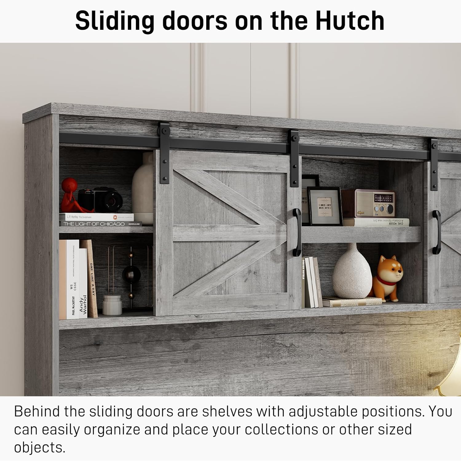 Farmhouse 67''H Executive Desk with Hutch & 5 Drawers, Rustic Office Desks Computer Desks with Charging Station, File Drawers and Storage Cabinets, Wood Workspace for Home Office & Study.(Grey).