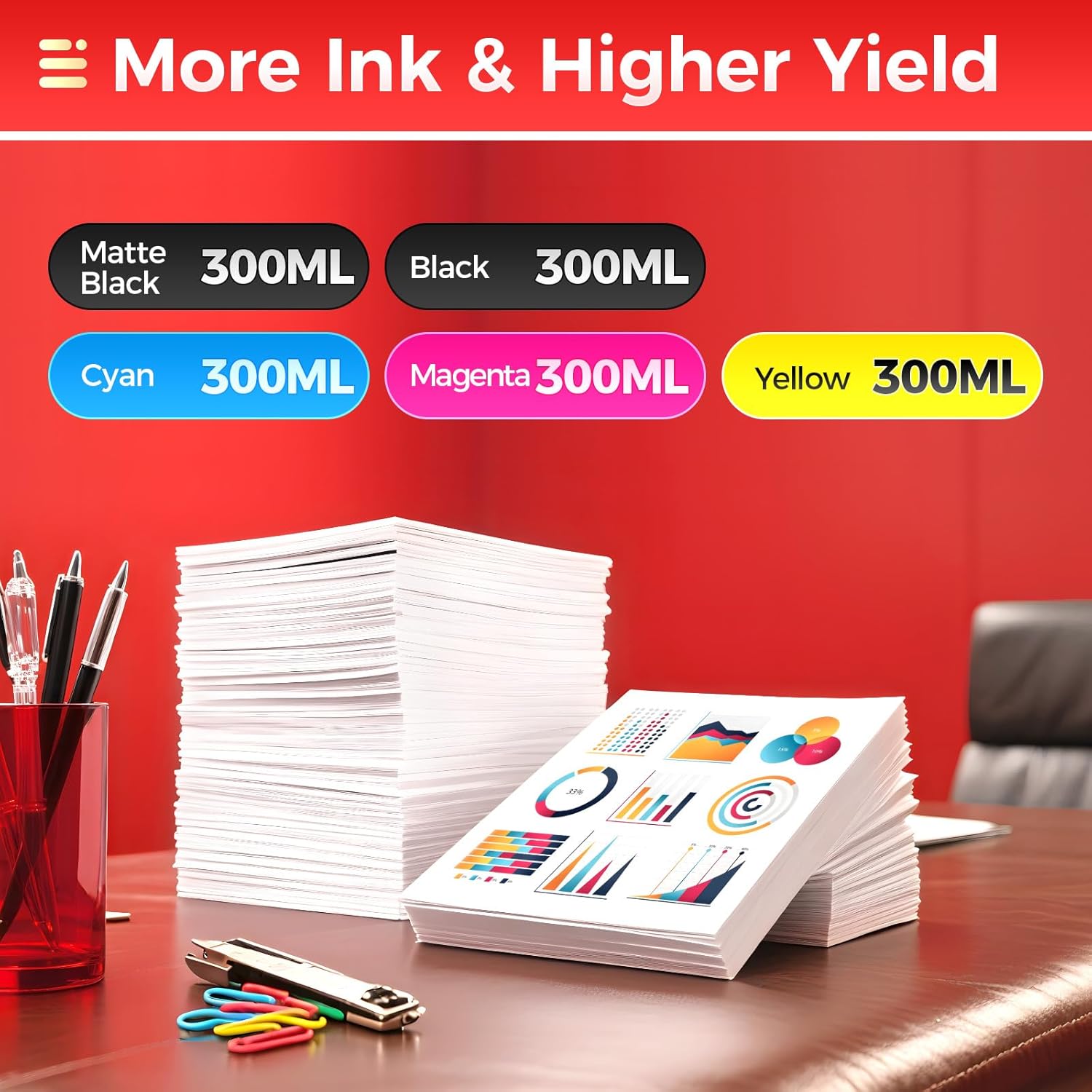 • Ink Volume: The capacity is 300ML per ink cartridges, Total ink volume is 1500ml. (2889C001AA, 2892C001AA, 2891C001AA, 2893C001AA, 2890C001AA)