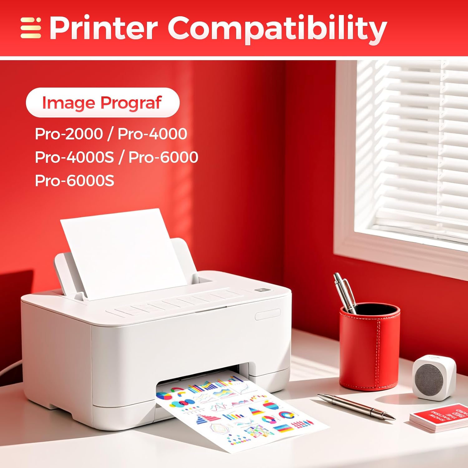 • Compatible Printer Models : Compatible with Canon imagePROGRAF PRO-2000,, PRO-2100, PRO-4000, PRO-4000s, PRO-4100,, PRO-4100s, PRO-6000, PRO-6000s, PRO-6100,, PRO-6100s large-format Printers. Compatible with Canon imagePROGRAF PRO-2000,, PRO-2100, PRO-4000, PRO-4000s, PRO-4100,, PRO-4100s, PRO-6000, PRO-6000s, PRO-6100,, PRO-6100s large-format Printers.