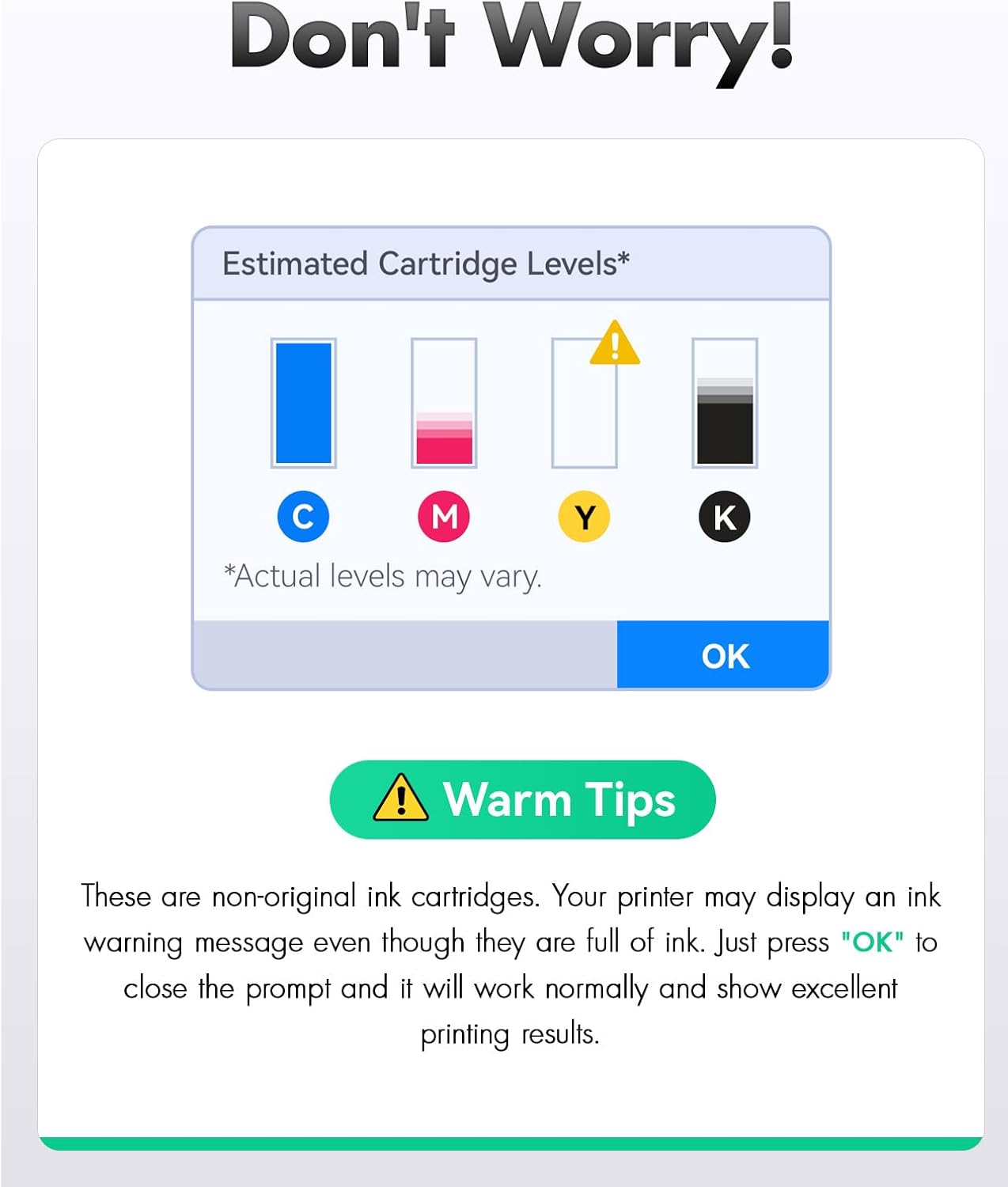 • The latest chip version: Zstint the Ink Cartridges is equipped with the latest upgraded version of the chip, ensuring perfect compatibility with each Ink Cartridges and quick recognition of the printer, allowing you to enjoy efficient and worry-free printing. Our Ink Cartridges have passed ISO9001 certification. High-quality Ink Cartridges meet the demands of high print volumes. Fine ink ensures clear and stain-free printing results and extends the service life of the printer. The printing effect is stable and reliable. You can install and replace it directly without manual adjustment.