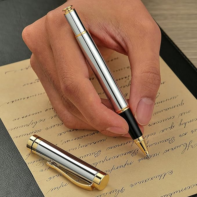 • Stainless Steel Body - Attractive business style stainless steel metal ballpoint pen, suitable weight can be comfortably held in the hand for writing. The pen is solid and more durable with a long life span. Although simple and minimalist, the Silver Chrome exterior of each pen looks classy and sophisticated. Meets all your needs for signing checks, taking notes, filling out forms, etc. Best pen for use in a professional, office, or business setting.