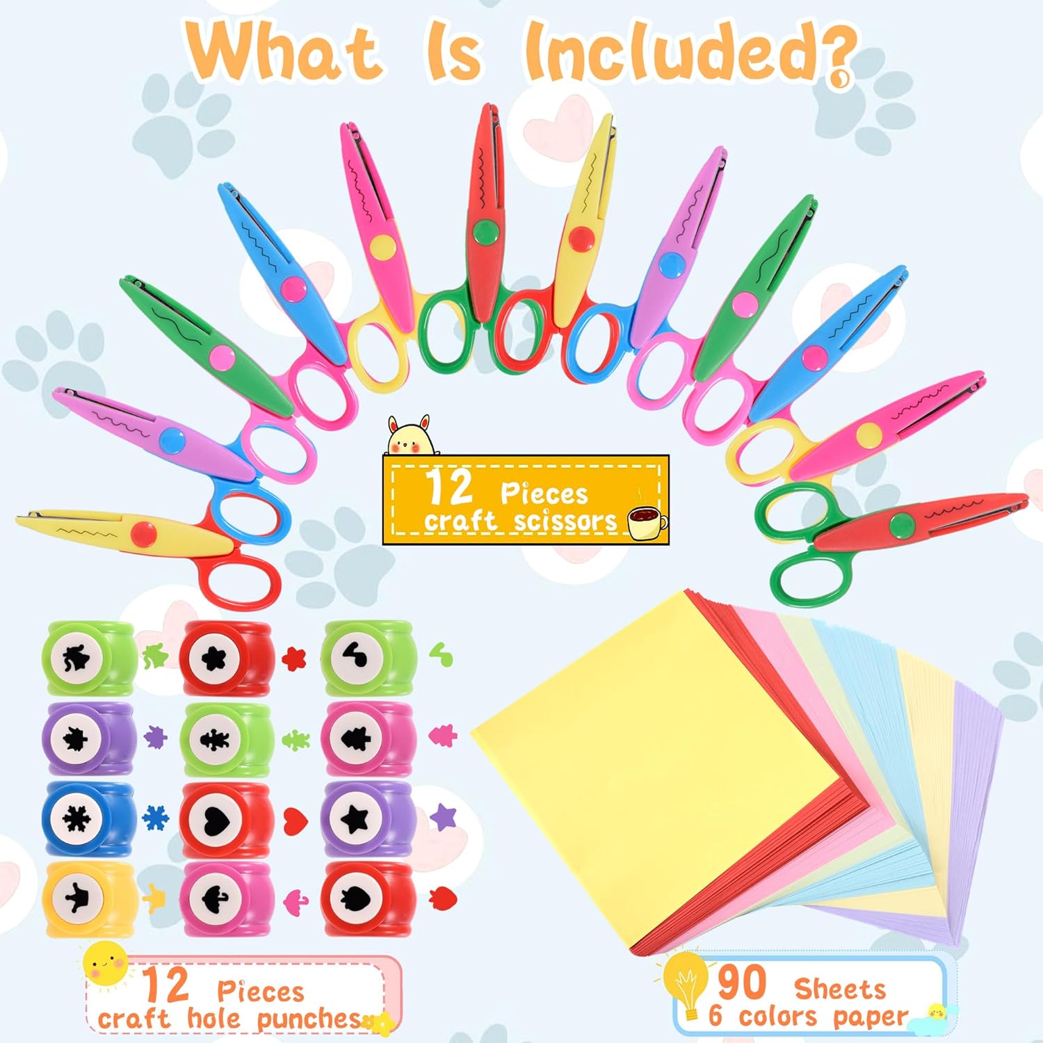 • All-in-One Craft Kit: Discover the ultimate crafting experience with our 12-piece craft scissors , 12-piece hole punch shapes, and 90 sheets of multicolored craft origami. Perfect for scrapbooking, card making, DIY projects, and school crafts