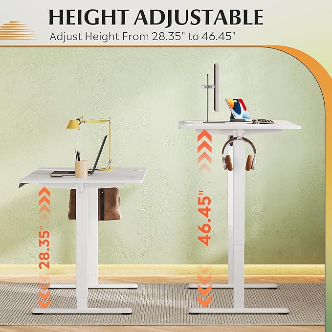 • Spacious Work Surface: The electric standing desk includes a large one-piece desktop panel to offer ample room for multiple monitors and a laptop along with your keyboard and mouse. Enjoy better productivity and organization thanks to the seamless work surface.