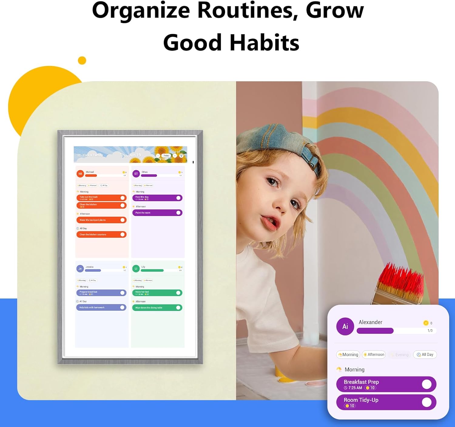 • Interactive Chore Chart & Routine Planning: Manage your household with an electronic calendar that keeps your home organized with an interactive chore chart and routine planner; assign tasks with reminders; track progress with color-coded labels; help kids build daily habits through consistent routines and chores.