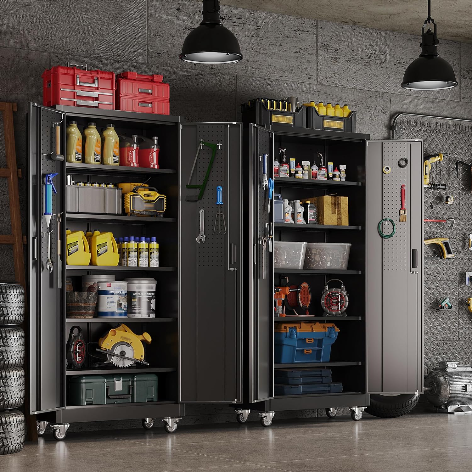 • [Garage Storage Cabinet] Plenty of storage. "great garage cleanup".You can move them around as needed and the casters and wheels work great on all the different surfaces inyour garage. Extra storage strong and fit your needs, it is sufficient for garage use.