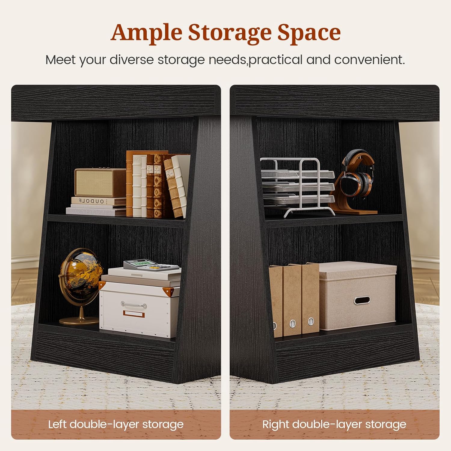 • 【Ample & Organized Storage】Double pedestal with spacious shelves keeps supplies, books & files organized & within arm's reach. Achieve effortless workspace efficiency & clutter-free focus!