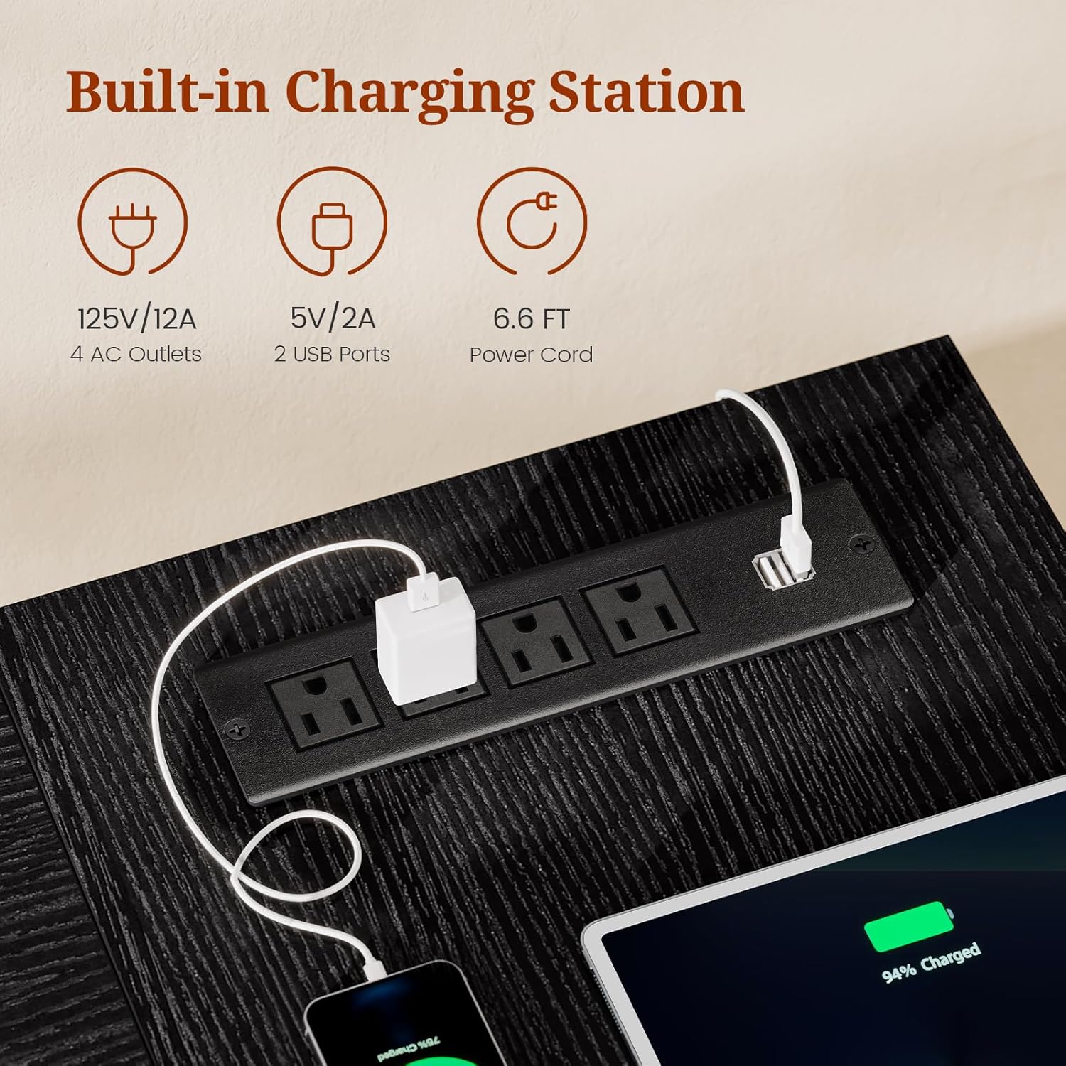 • 【Useful Power Outlets】Our home office Desk includes 4-outlet & 2 USB ports to provide power for up to 6 devices simultaneously. Power outlet allows you to charge mobile devices such as cell phones, tablets, printers, etc.