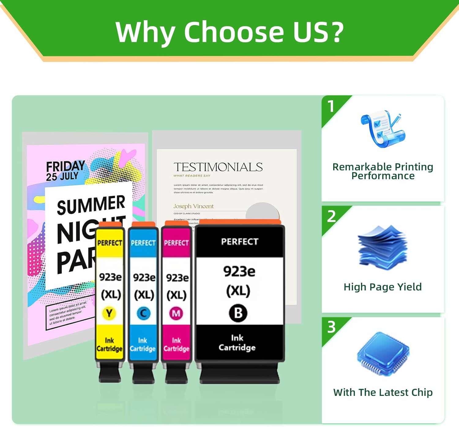 • Package Content: 923XL 923e Ink Cartridges Combo Pack (1 × 923e Black, 1 × 923e Cyan, 1 × 923e Magenta, 1 × 923e Yellow Ink Cartridge)