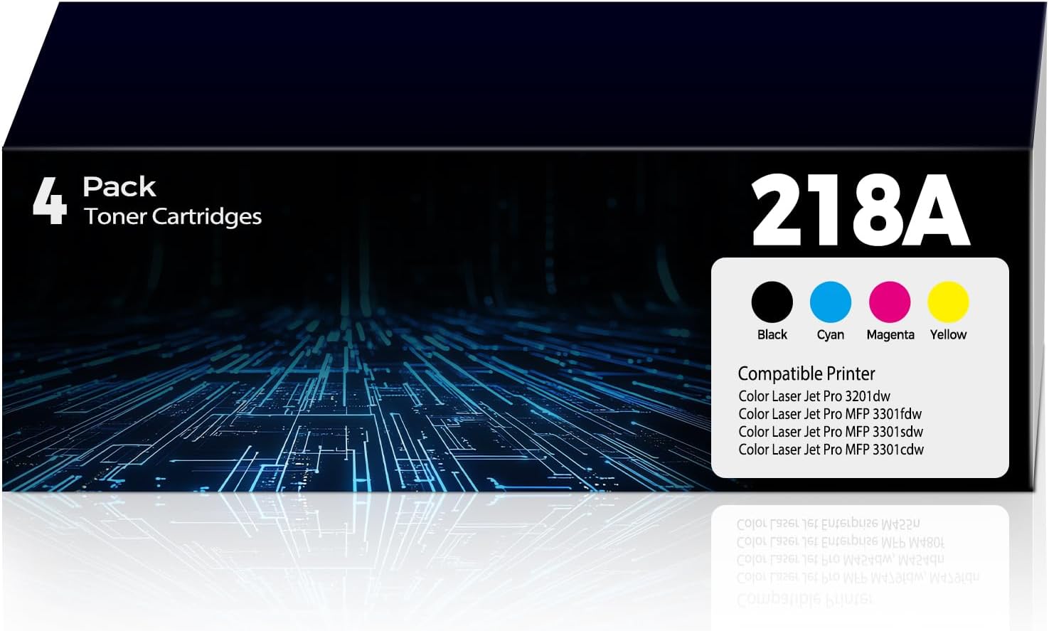 • These 218A Toner Cartridges 4 Pack are compatible with HP 218A 218 218 toner set replacement for HP Color Laser Jet Pro MFP 3301fdw toner cartridges, Color Laser Jet Pro MFP 3301sdw toner cartridges, Color Laser Jet Pro 3201dw toner cartridges, Color Laser Jet Pro MFP 3301cdw toner cartridges