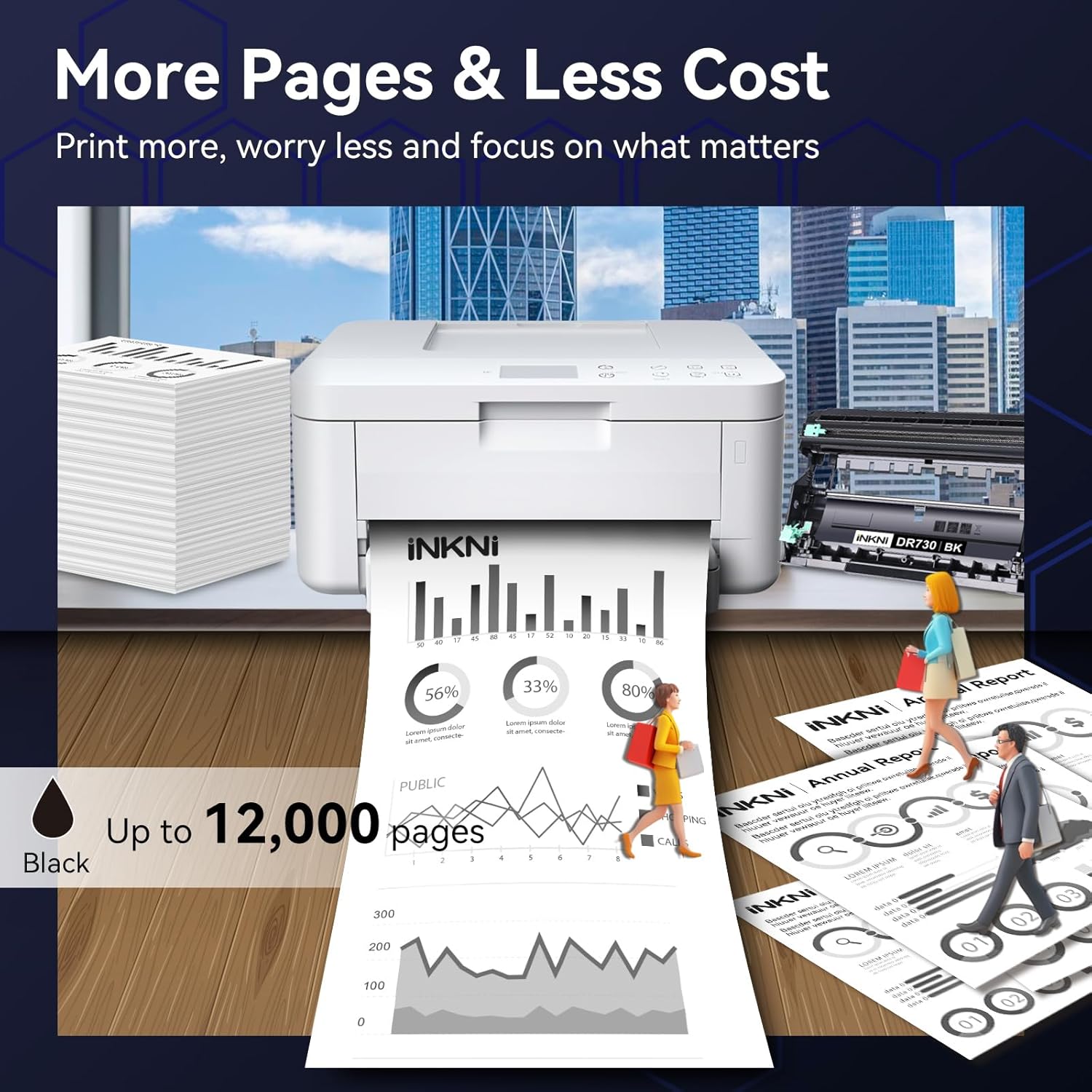 • [High-Yield Performance] - 12,000 pages per dr730 drum unit, at 5% letter/A4 paper coverage
