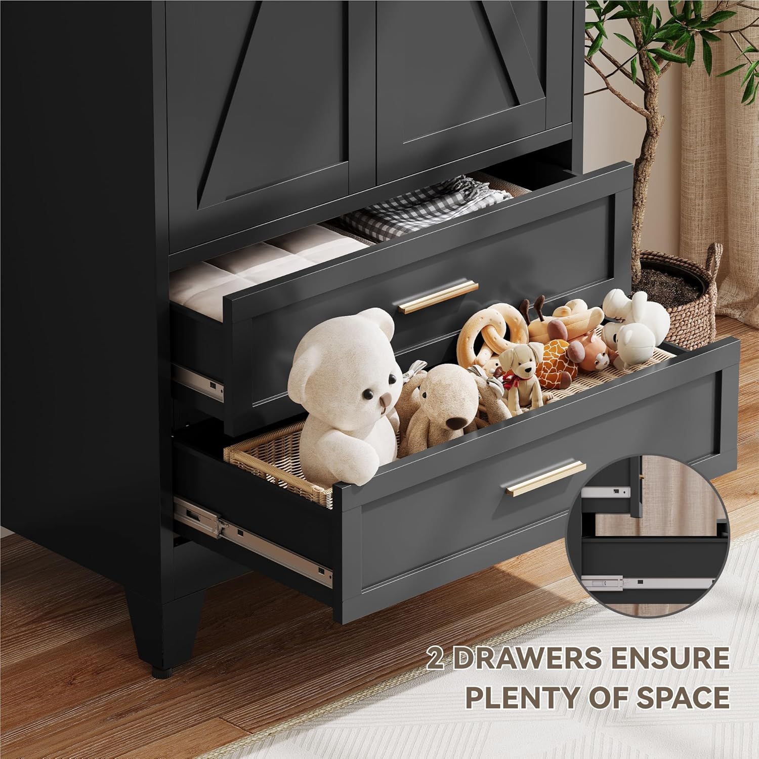 • Farmhouse-Style Aesthetic: The door panel of the metal wardrobe closet is designed with a charming farmhouse aesthetic, adding a touch of rustic elegance to your space. Closet organizers and storage classic design complements a variety of decor styles, making it a versatile choice for any room