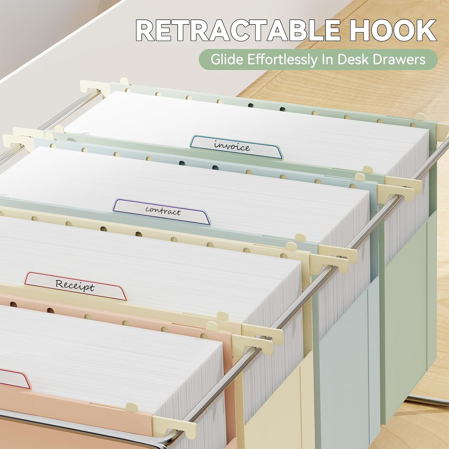 • 【EASY ACCESS】:The large capacity hanging file folders with colorful labels help locate files quickly,12 insertable and adjustable labels,not easily bent or dropped,helps you stay organized.