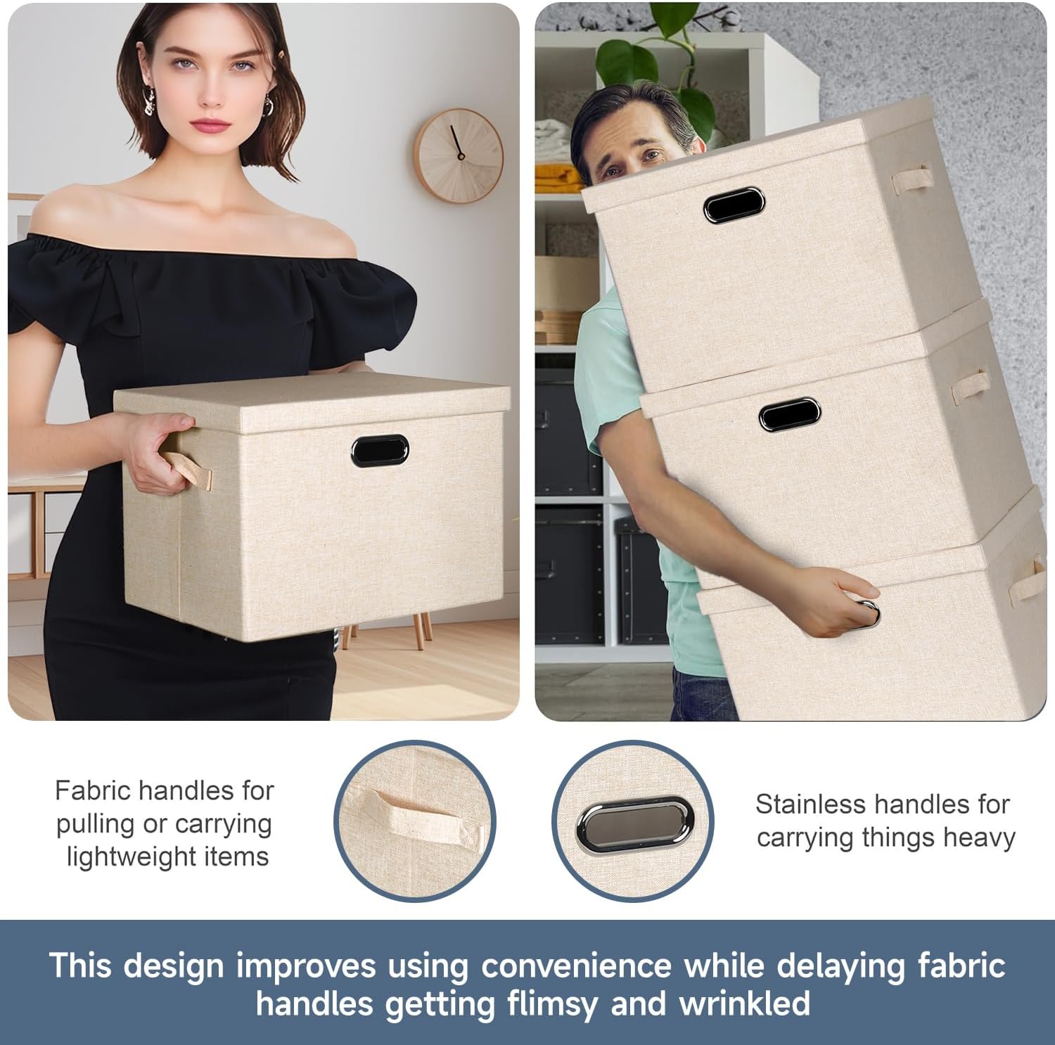 • ✅[Constant Use] Covered by thick textured cloth, our large lidded storage bins prevent daily wears and tears. They can keep dust and bugs out also, avoiding dirt and musty smell. You can use these decorative storage boxes with lids everyday or for long term storage.