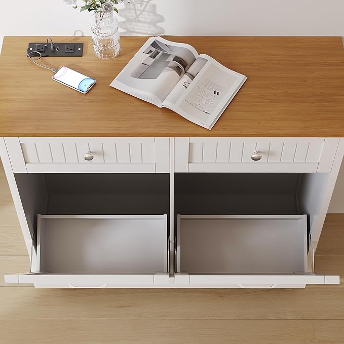 • Multifunctional Storage Hub: More than just a trash cabinet! Use it as a laundry hamper in the utility room, a bedside waste bin, or even a charging station—the built-in power outlet keeps devices powered up. The metal hinges holds the door tilt open for both hands to dispose of waste, while the drawer organizes trash bags and supplies
