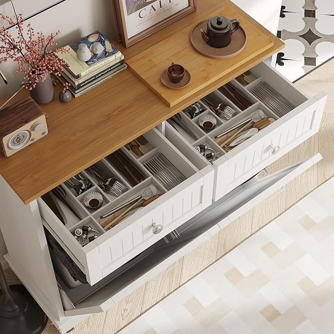 • Thoughtful Farmhouse Touches: Elevate your space with classic striped design and crisp white finish. Metal handles add a polished look, durable enough for daily use. Compact yet spacious, it tucks neatly into corners without sacrificing storage