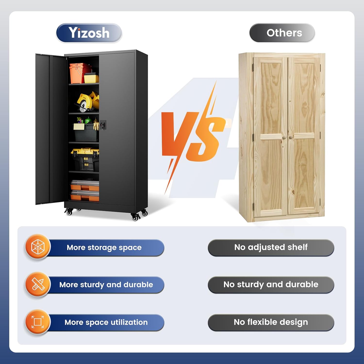 Yizosh Metal Garage Storage Cabinet with Locking Doors and Adjustable Shelves,- 75" Rolling Steel Tool Cabinet for Home Office,Garage,Warehouse