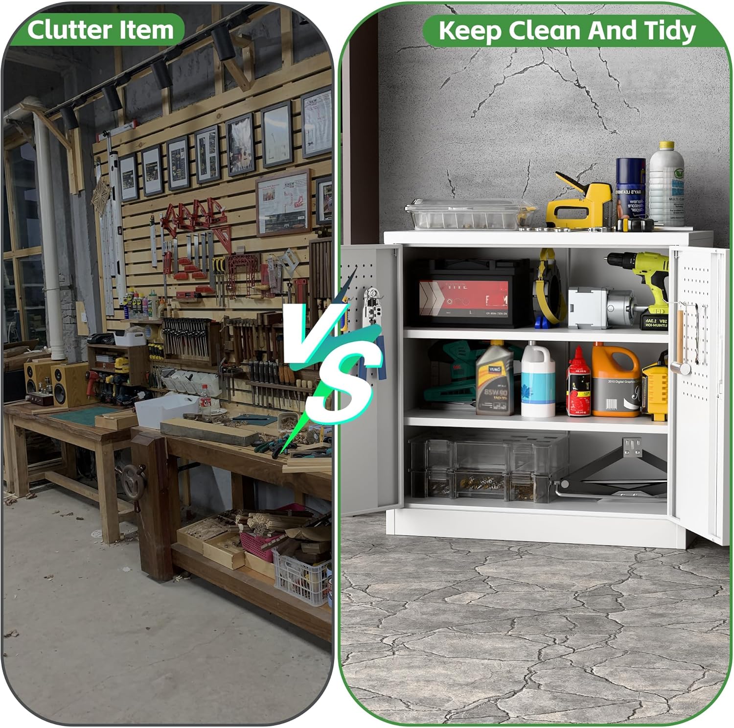 • Redesigned for Efficiency: Integrated Pegboard Doors + Free Hooks! "NEW UPGRADE: Double doors feature full pegboard panels and include four heavy-duty hooks. Instantly hang tools, cords, or accessories – maximizing every inch of space for a super-organized, ultra-convenient workspace."