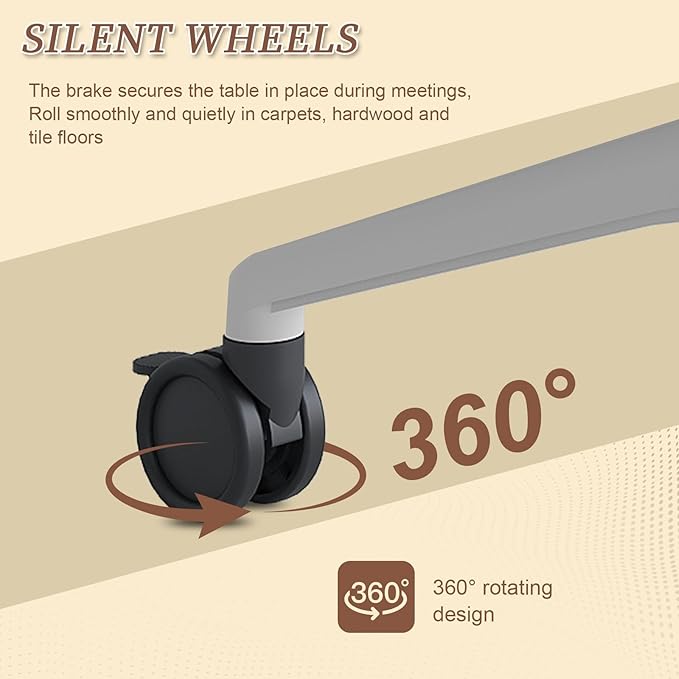 • 【Noiseless Wheels】Our flip top meeting table is equipped with 360° rotated casters which is made of Polyurethane material. The wheel of modern folding training tables is noiseless and can move smoothly. Also, our wheels of rolling meeting table has brake which can make your table stay in place during meeting.