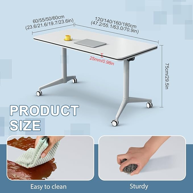 • 【Sturdy & Long-Lasting Build】Crafted with 25mm thick boards and aluminum alloy brackets, this seminar table resists bending—even with heavy use. Our rolling conference room tables are also waterproof, stain-proof, and scratch-resistant, so our folding conference table stays looking new for years. Durable enough to keep up with your busiest days.