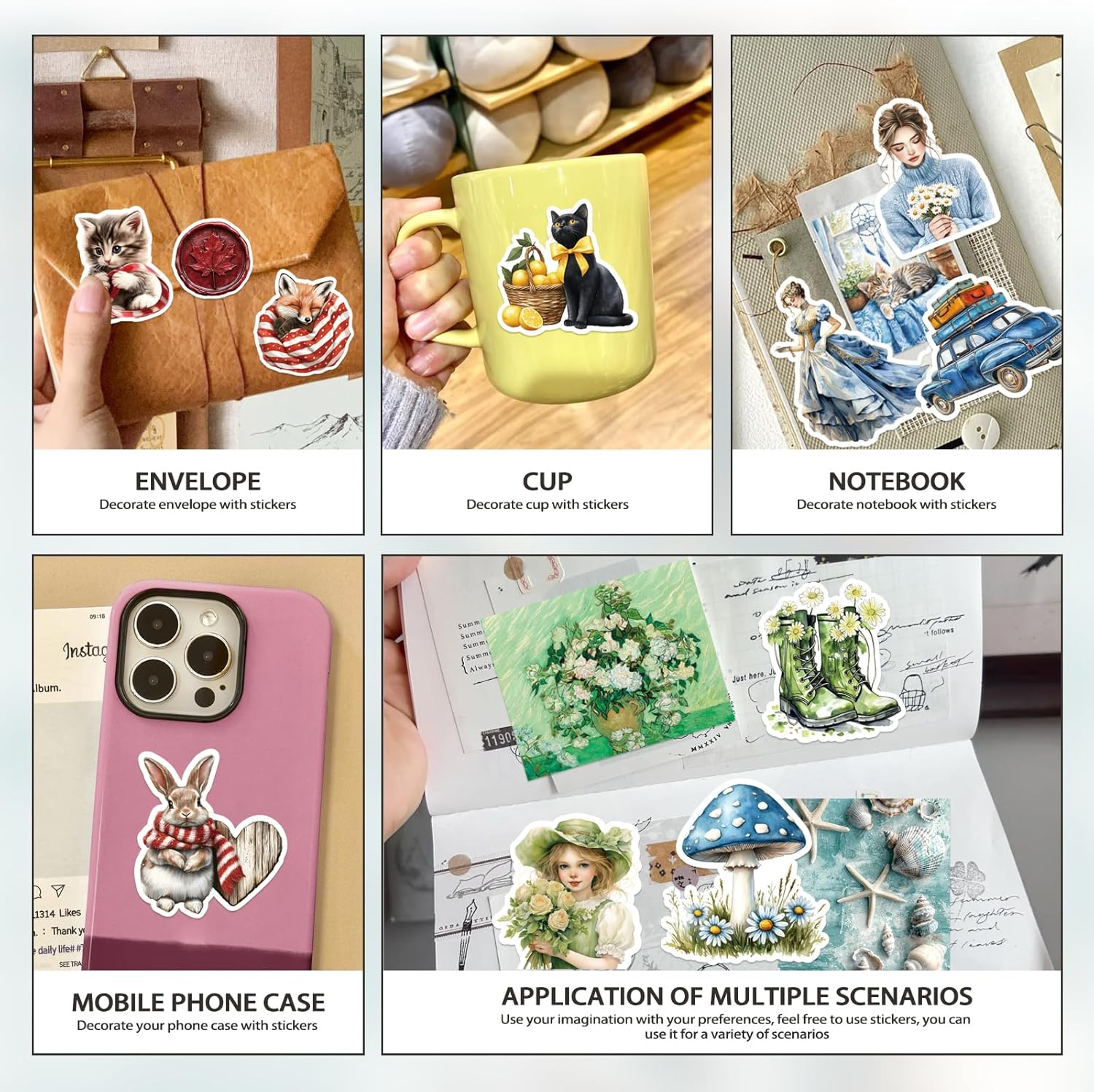 • Aesthetic Scrapbook Stickers: you will get 480 pcs vintage aesthetic junk journal stickers,240 different designs,2 of each.Each sticker sizes 2-3 inches.