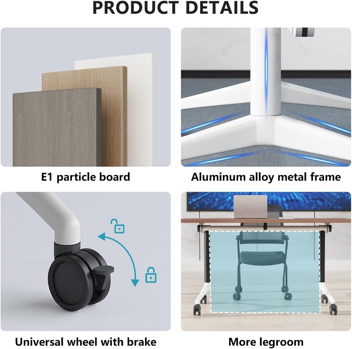 • Sturdy conference table: The metal frame of this conference table is made of aluminum alloy, with strong load-bearing capacity and will not rust after long-term use. Suitable for various occasions such as schools, commercial offices, libraries, training schools, etc