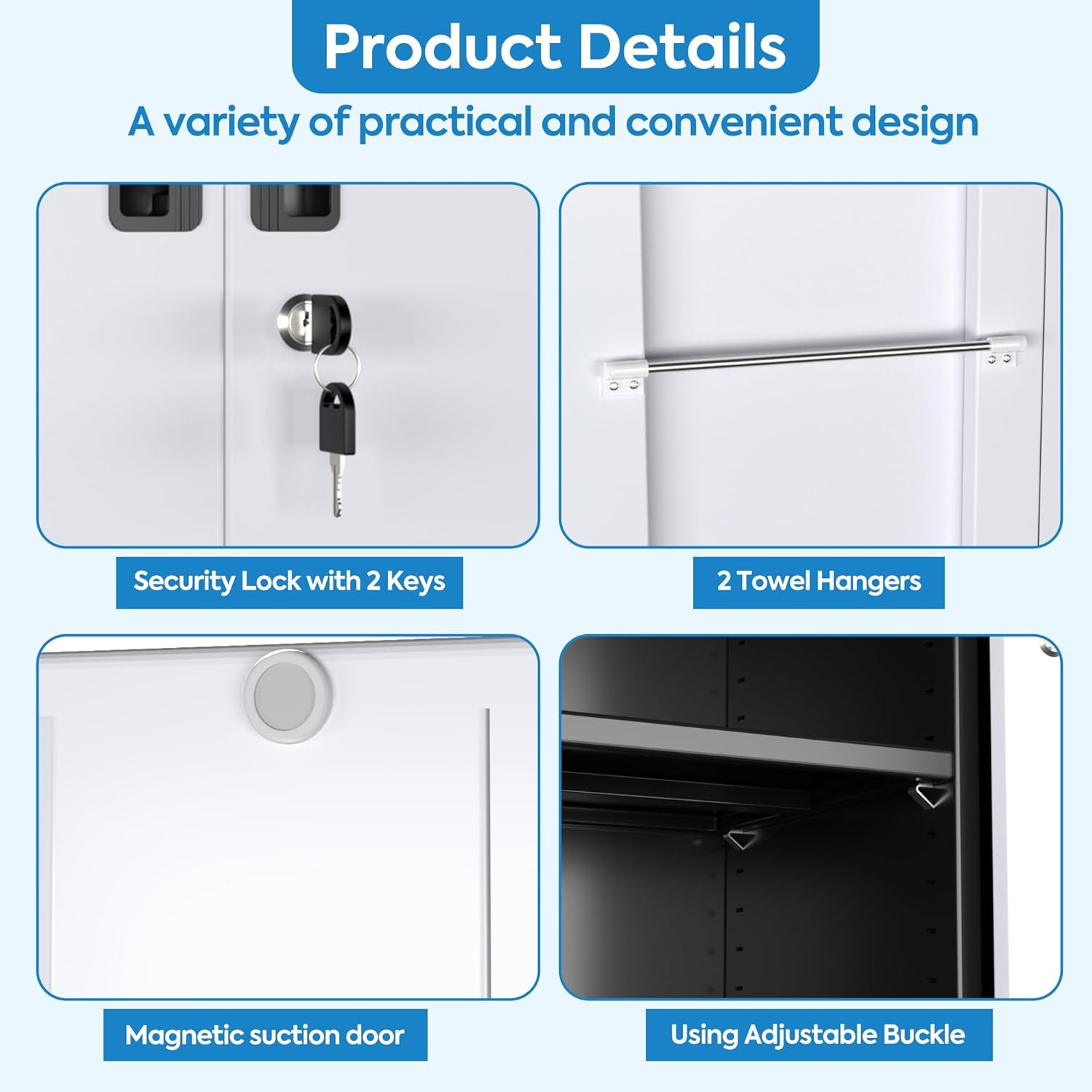 • [DIY YOUR STORAGE] Our storage cabinet provides 4 adjustable shelves, 3 pieces of Pegboard, 1 hanging rod, 2 towel rails, 6 hooks and 3 pegs, catering to your DIY needs. You can design a storage solution that perfectly fits your unique lifestyle and storage requirements.