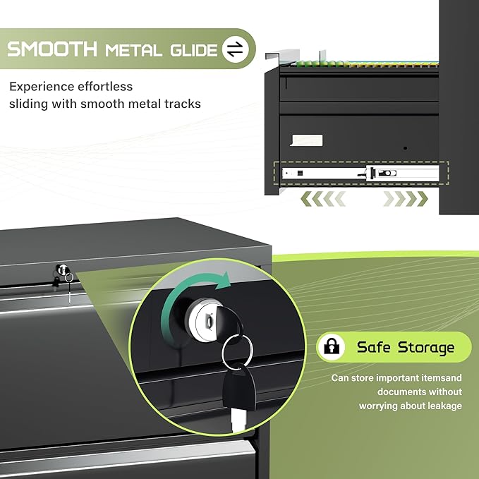 • 【Reliable Locking system】 The office file cabinets are equipped with two keys and an interlocking system that can lock all drawers simultaneously for your daily use and keep your important documents safe even when you are out of the office.