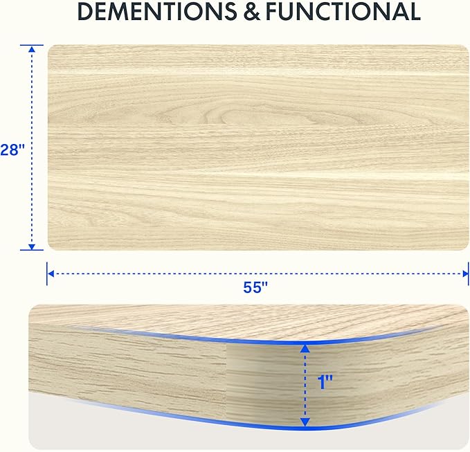 • AMPLE WHOLE-PIECE DESKTOP: With its whole-piece 1” eco-friendly desktop, this standing desk provides plenty of room for your computer setup, documents, and accessories, creating a well-organized and productive work environment. Due to hand measurements, desktop dimensions may vary slightly by 0 to 3”.