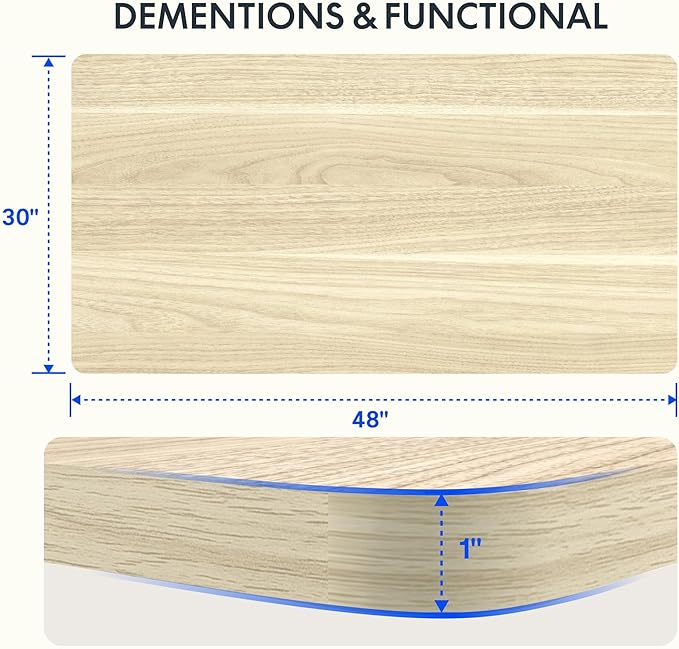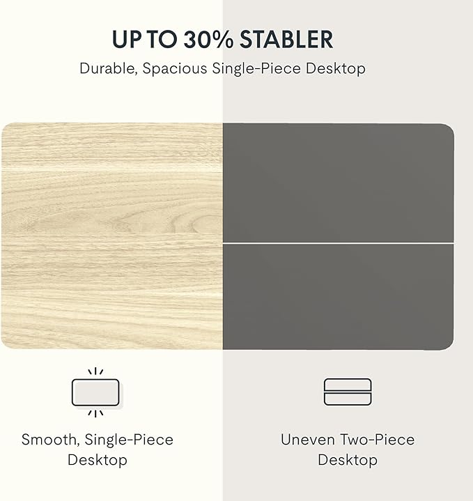 • AMPLE WHOLE-PIECE DESKTOP: With its whole-piece 1” eco-friendly desktop, this standing desk provides plenty of room for your computer setup, documents, and accessories, creating a well-organized and productive work environment. Due to hand measurements, desktop dimensions may vary slightly by 0 to 2”.