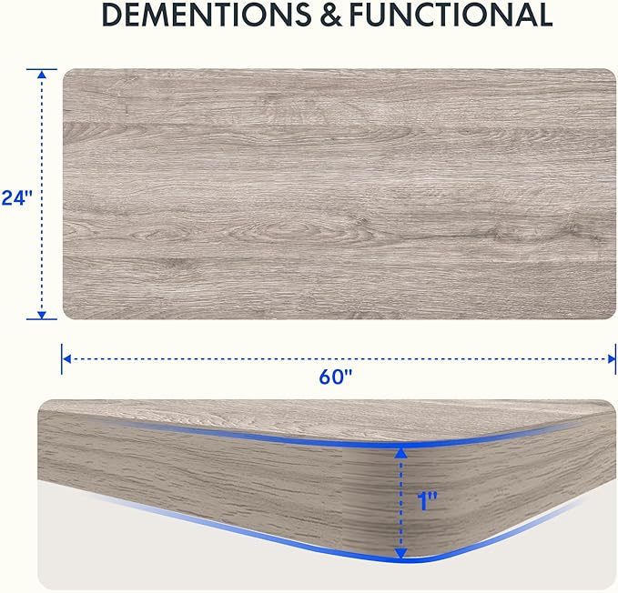 • AMPLE WHOLE-PIECE DESKTOP: With its whole-piece 1” eco-friendly desktop, this standing desk provides plenty of room for your computer setup, documents, and accessories, creating a well-organized and productive work environment. Due to hand measurements, desktop dimensions may vary slightly by 0 to 1”.