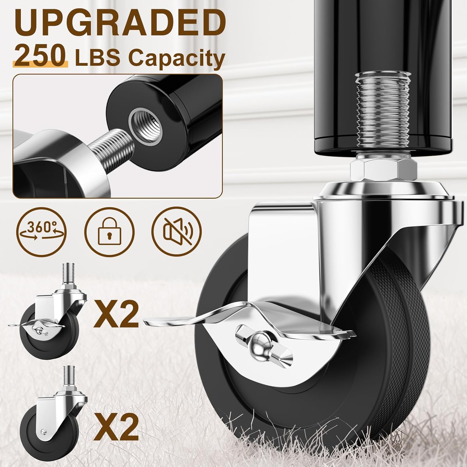 • UPGRADED STURDY WHEEL—NO MORE BREAKING! Fybee coat rack upgraded to larger, heavy-duty wheels that won't bend or crack under heavy loads. The smooth 360° swivel design makes repositioning effortless, even when the clothing rack with shelves is fully loaded. Two wheels are lockable for added stability, and the upgraded design is both quiet and safe for all floor types. Fybee clothes rack for hanging clothes, built to last, built for convenience.
